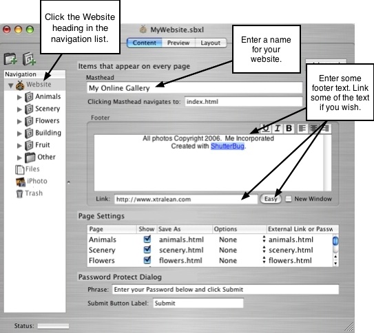 Give each page in the Navigation list a title by double-clicking on the text field and