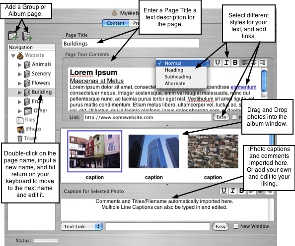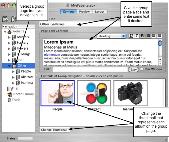 Click the Add Group & Album icons to add new group & album pages to your website.