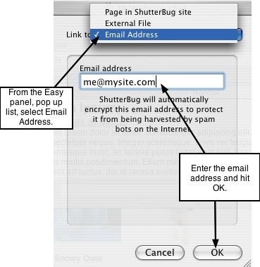 not include the "mailto:" prefix. ShutterBug will automatically encrypt the address to