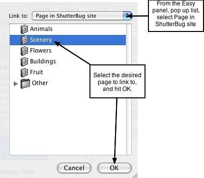 box. Choose Page in ShutterBug site from the list to reveal a list of pages in your