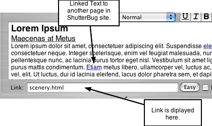 ShutterBug's Easy button makes it so simple to add links to your text. You can insert