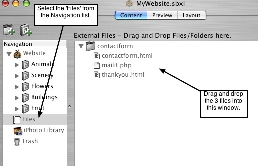 three files (or just drag the contactform folder) into the 'Files' window, as shown in the