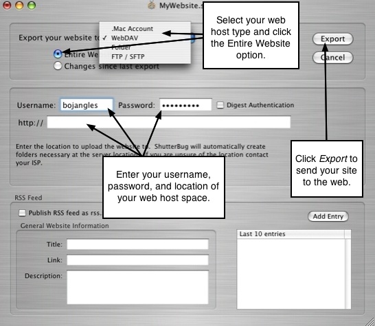 location for your web host space. (For instructions on exporting to a .Mac Account,