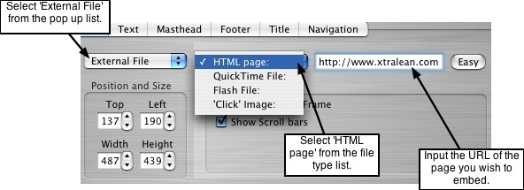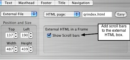 HTML in a frame option, you can choose to enable scroll bars for the embedded HTML