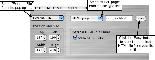 4.  Select 'External File' from the pop up list. Then select HTML page from the external
