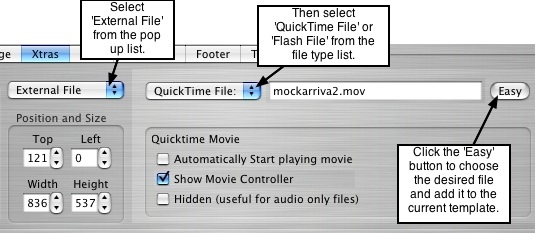 6. Select 'External File' from the pop up list. Then select QuickTime File or Flash File