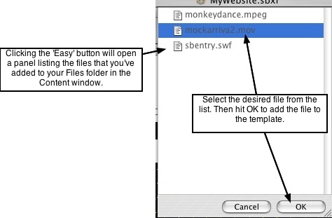 location in your site. To add a QuickTime or Flash file to your site and the selected