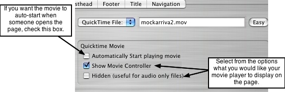 Show Movie Controller - check this box to display the movie controls on the bottom