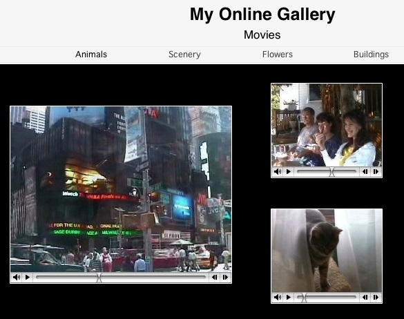 of the movie player (play, pause, progress slider, rewind, and fast forward).