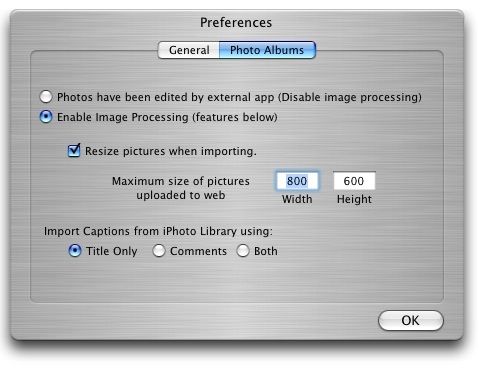 Click the Photo Albums tab. Select the radio button beside Enable Image
