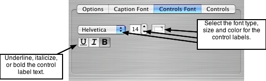 edit each control font separately. Controls include the Previous and Next buttons, Play