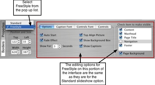 FreeStyle and Standard is that the FreeStyle option breaks the slideshow components