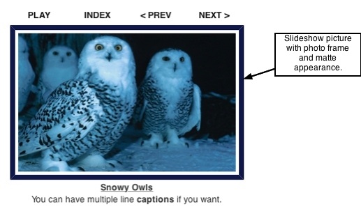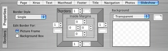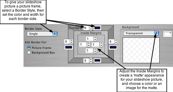To give your slideshow pictures a photo frame, click the Picture Frame radio button.