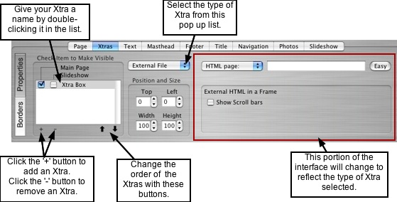 Click the Xtras tab to reveal the options available for adding and editing Xtra boxes.