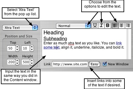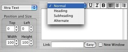 the xtra text. Select the font styles, choose the text alignment, and link some of the