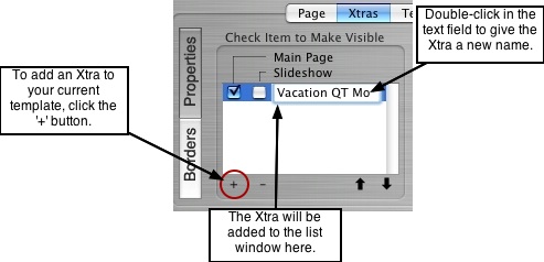 NOTE: Like the other elements in the Layout window, Xtras are added to the template