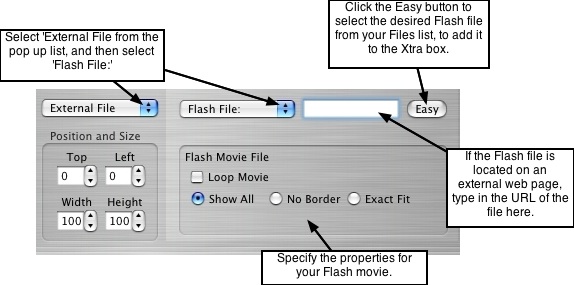 iii) Flash File: This Xtra lets you add a Flash file (.swf file) to a template. ShutterBug