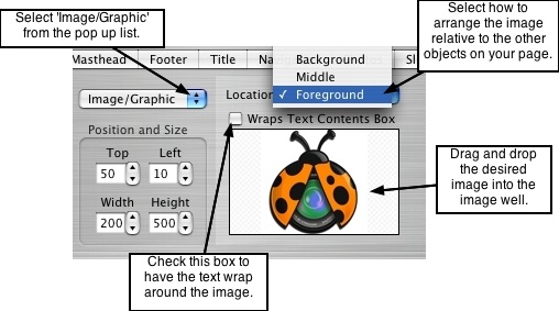 background, middle, or foreground of the page. The graphics can be a GIF, PNG, or