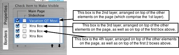 2. The Xtra boxes are placed on the page second, arranged on top of the elements,