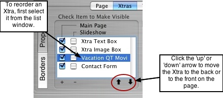 allowing you to change the layer positioning of each Xtra on the page. The up and