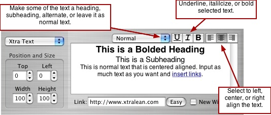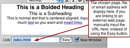 3. To link some text, select the text to be linked, then click the Easy button. A panel will