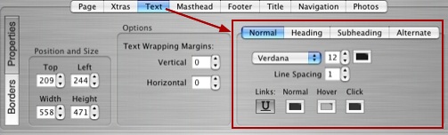 your main text contents box. To edit the fonts, click on the Text tab. From the