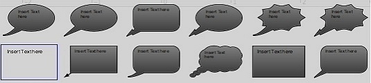 12 text objects for labeling your images with text, text boxes, thought clouds, talking balloons and