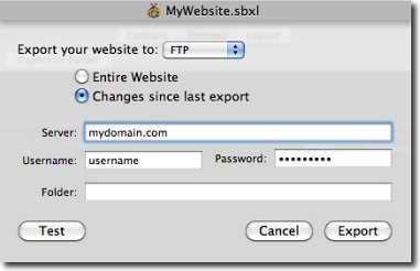 The Export menu lets you specify your web host settings and you'll never have to change them again