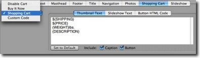 The Shopping Cart tab also allows advanced users the option of adding custom code in order to integrate
